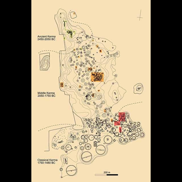 Based on ceramic materials discovered in the cemeteries on Sai Island and at Kerma, three chronological periods can be distinguished: Early Kerma (circa 2450-2050 B.C.), Middle Kerma (circa 2050-1750 B.C.) and Classic Kerma (circa 1750-1480 B.C.). A fourth period, called Final Kerma, denotes the transition between the end of the kingdom and the Egyptian occupation (circa 1480-1450 B.C.).