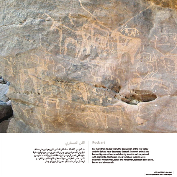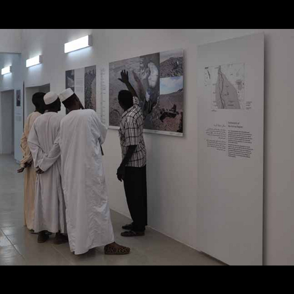 A first series of panels introducing the museum is displayed on a side of this central space, while a second describing the discovery of the statues is affixed to the other side. These 16 bilingual (Arabic and English) didactic panels were designed in Switzerland. Measuring between one to two metres square, these panels present by means of large photographs, tables and texts the different cultures that have developed in the region. One panel was designed for each of the main periods (Prehistory, Kingdom of Kerma, Kingdom of Napata and Meroe), delving deeper in the understanding of cultural evolution.